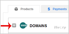3. After a successful login, click on the + (plus) icon next to Domains in the "Products" tab.
